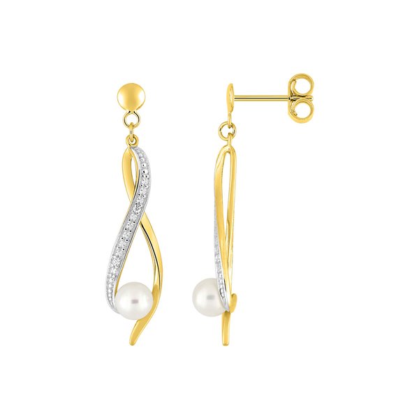 Boucles d'oreilles pendantes perle de culture d'eau douce diamant 01 Or Jaune 375 rhodiée